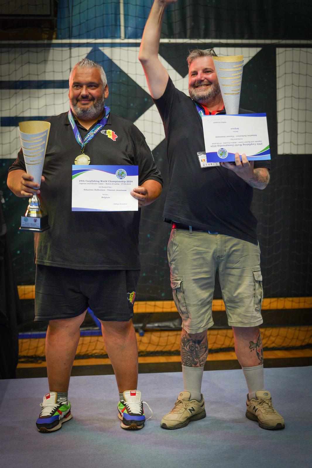 Superbe performance de l'équipe belge lors du 24e Championnat du Monde de Pêche à la Carpe en duo qui s'est déroulé en Croatie du 4 au 7 septembre 2024: médaille de bronze pour l'équipe belge et médaille de bronze pour le duo constitué par Sébastien Delferrière et Vincent Jeuniaux !