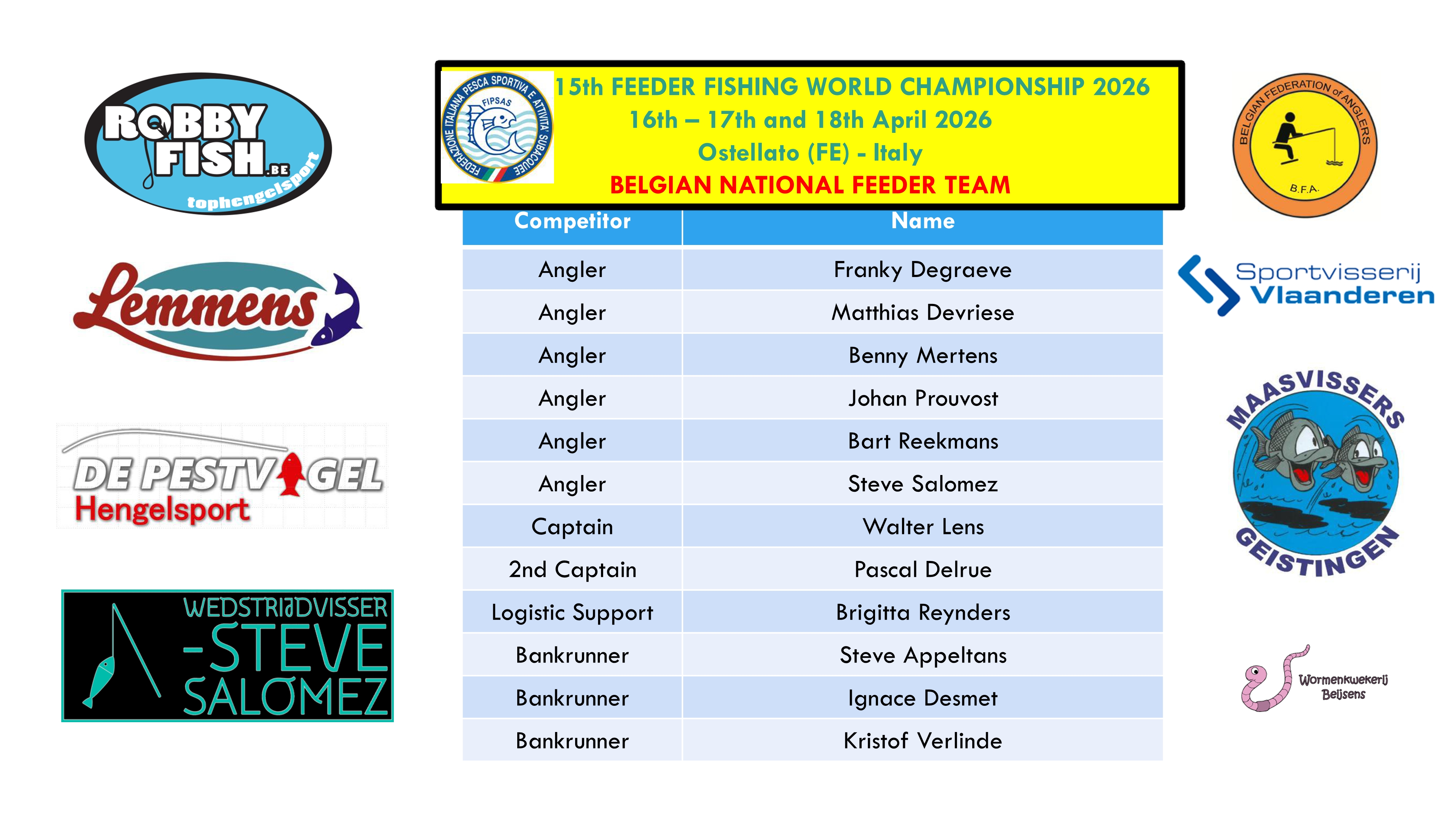 Inters Feeder- Composition de l'équipe belge pour le 15e Championnat du Monde Feeder 2026